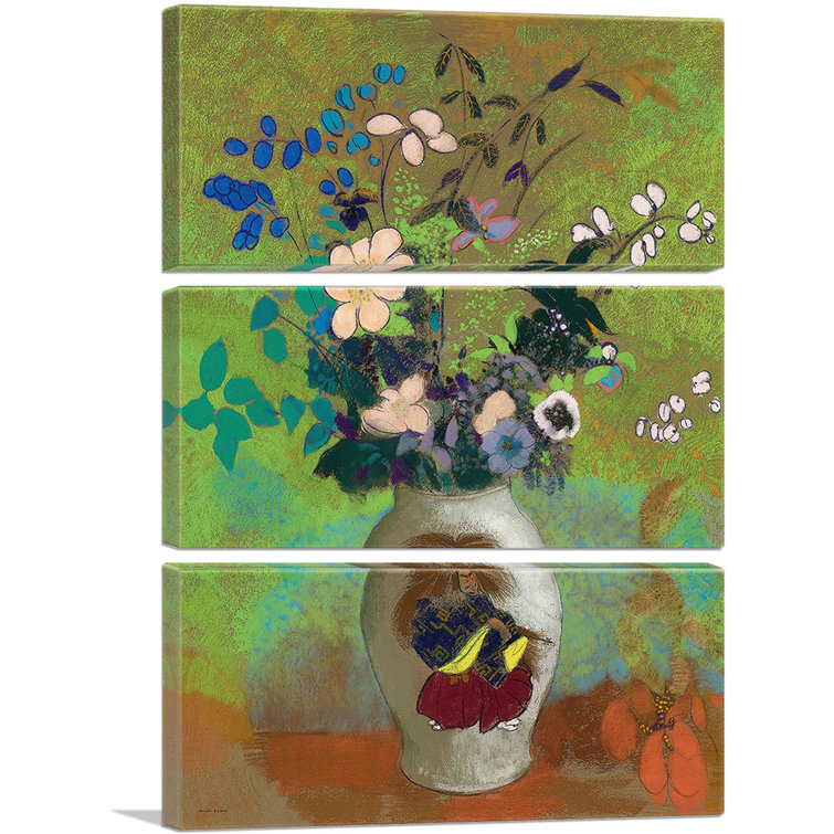 Artcanvas Vase With Japanese Warrior 1905 By Odilon Redon 3 Piece Wrapped Canvas Painting Wayfair