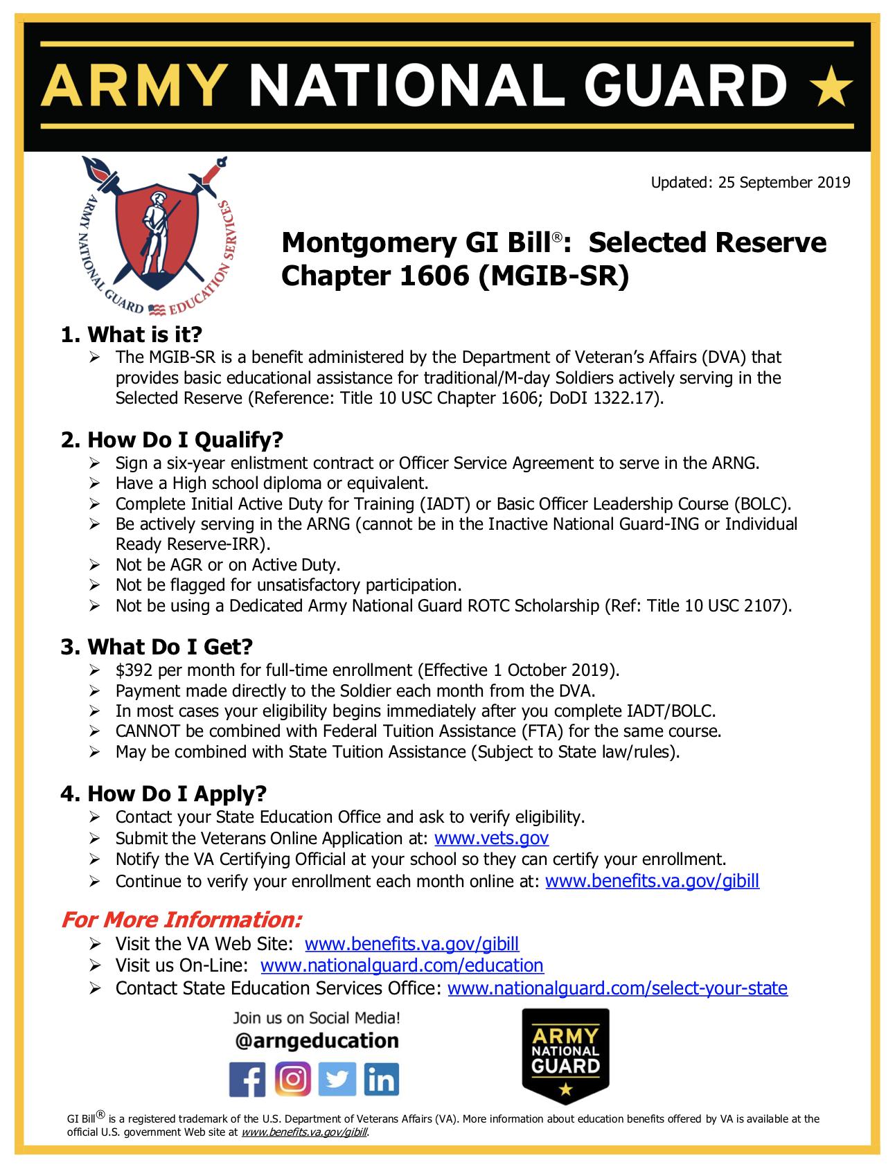 Army National Guard Education Services On Twitter New Flyer This Is The Latest And Greatest Information Regarding The Montgomery Gi Bill Selected Reserve Chapter 1606 Education Benefit Program Nationalguard Arngeducation Https T Co 9jhas8q1s7